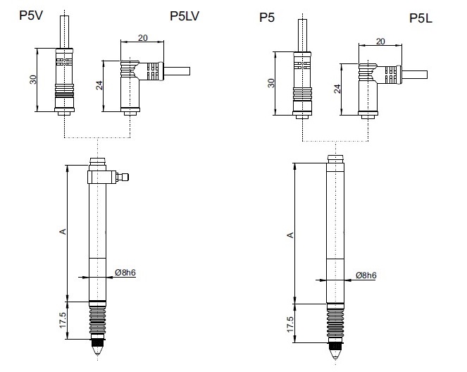 SYLVAC電感測頭P5 P10 P25尺寸: