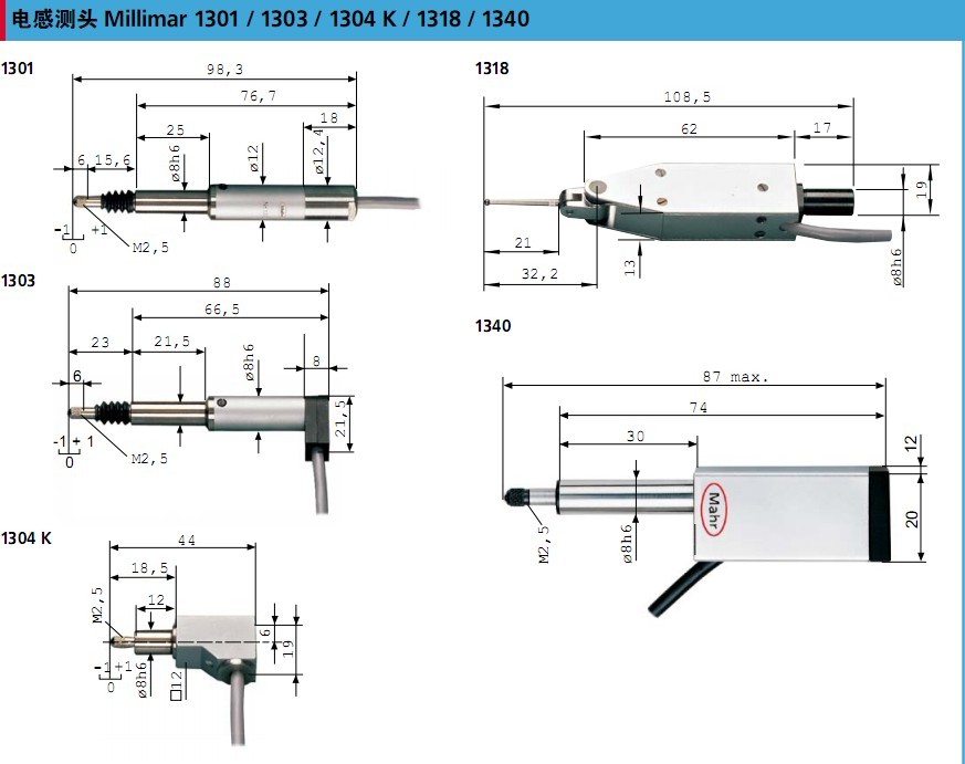 Mahr 1301/1303/1304K/1318/1304電感測頭